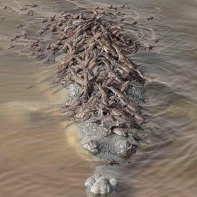 Так мама-крокодил перевозит своих малышей
