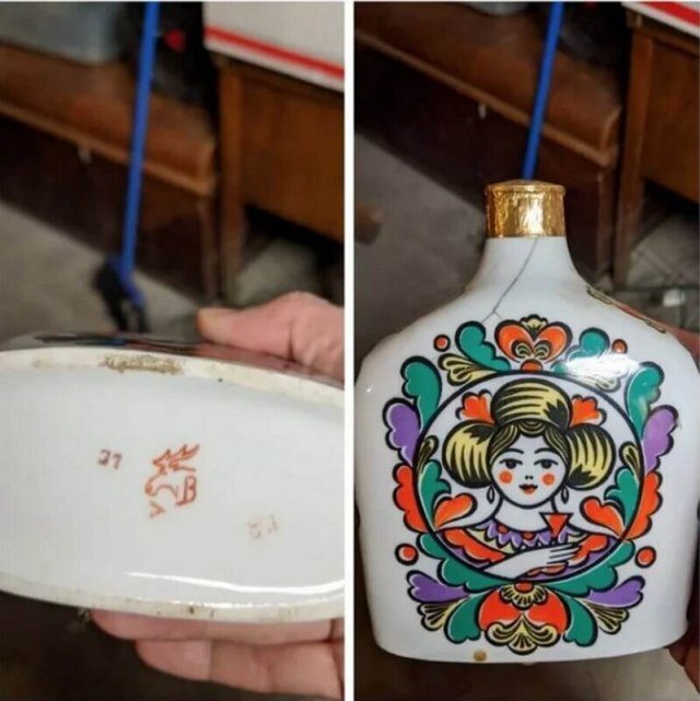 Люди не понимали, что за странная бутылка попала к ним в руки, а оказалось, что это штоф для водки. Выпуском таких занималась фабрика фарфора в Вербилках неподалеку от Москвы.