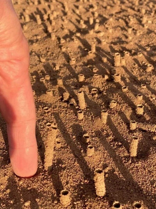Необычные столбики — это гнезда роющих пчел, которые, закапываясь в землю, создают вот такие необычные конструкции.