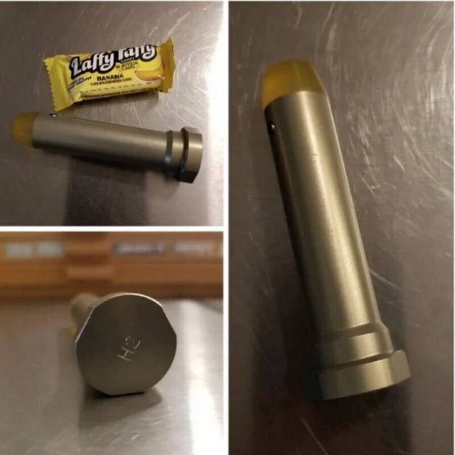 Автор фото пояснил, что эта штука хранилась долгое время в коробке. Длина — 8 сантиметров. Оказалось, что это буфер противоотскока, использующийся в винтовке AR-15. В оружии это используется для амортизации удара подвижных частей в заднем положении. Кроме того, конструкция снижает скорость наката, понижая темп стрельбы до допустимой нормы.