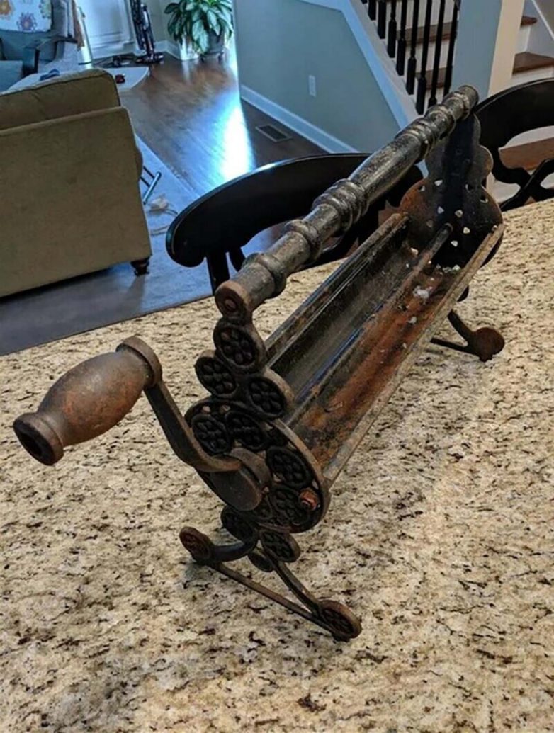 Ответ: В прежние времена газет было так много, что излишки приходилось сжигать. Для этого их пропускали через данное устройство, которое скручивало их в толстые рулоны.