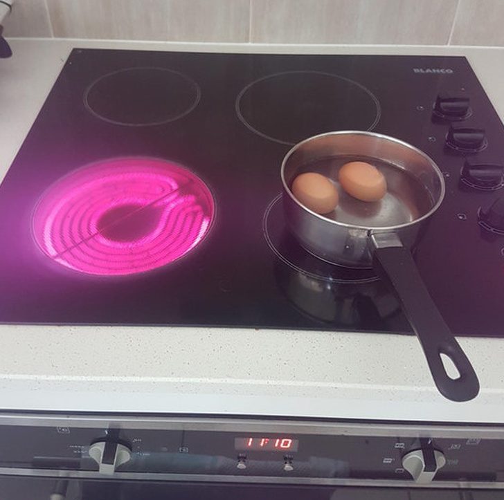 Странно, яйца поставлены вариться час назад, а вода даже не закипела