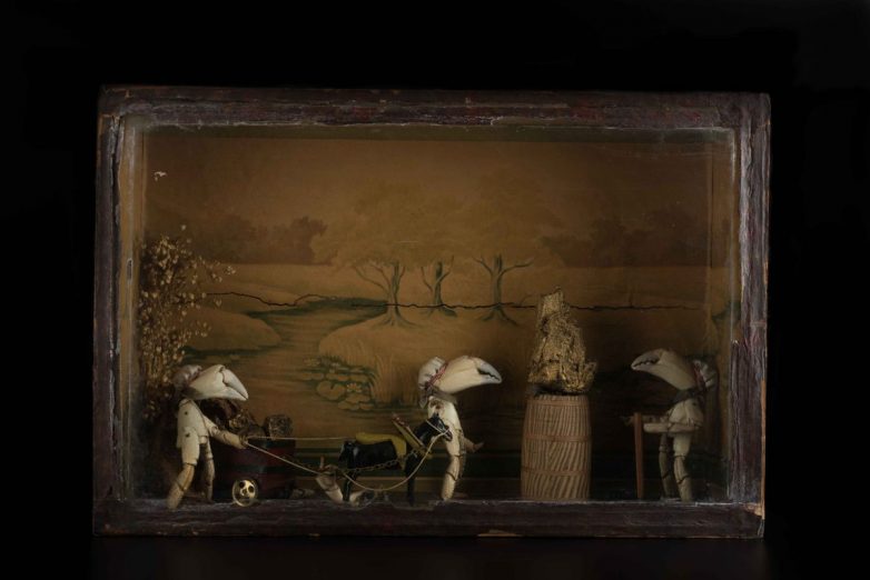 Жутковато смотрятся фигурки людей, сделанные из клешней крабов.