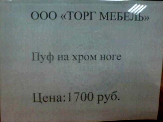 Гуляя по улицам российских городов (само собой, когда кончится вся эта история с пандемией коронавируса), не забывайте внимательнее смотреть по сторонам. Возможно, вам тоже посчастливится увидеть подобные объявления, которые были составлены явно не самыми внимательными людьми.
