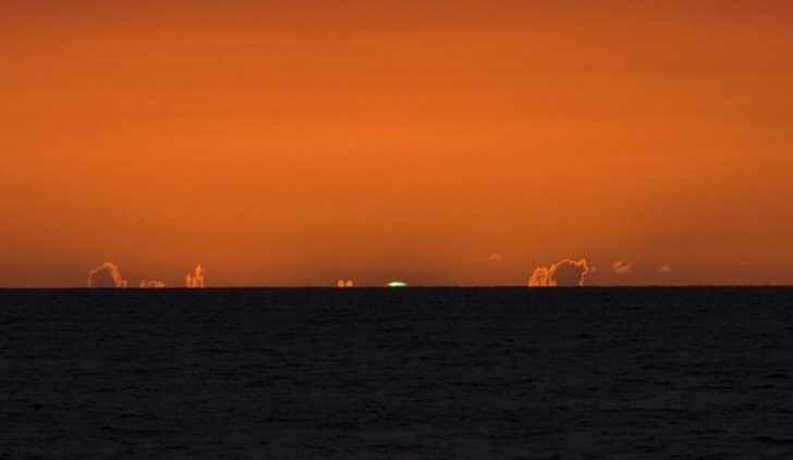 На этом снимке неизвестное науке редчайшее явление “зеленая вспышка”. Его можно увидеть на закате и это не край солнца, а нечто пока непонятное.