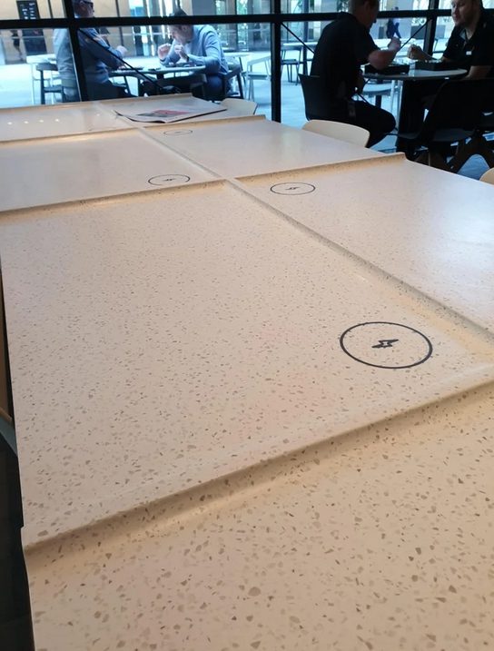 Знак, что в этом месте в столе есть встроенная беспроводная зарядка для смартфона