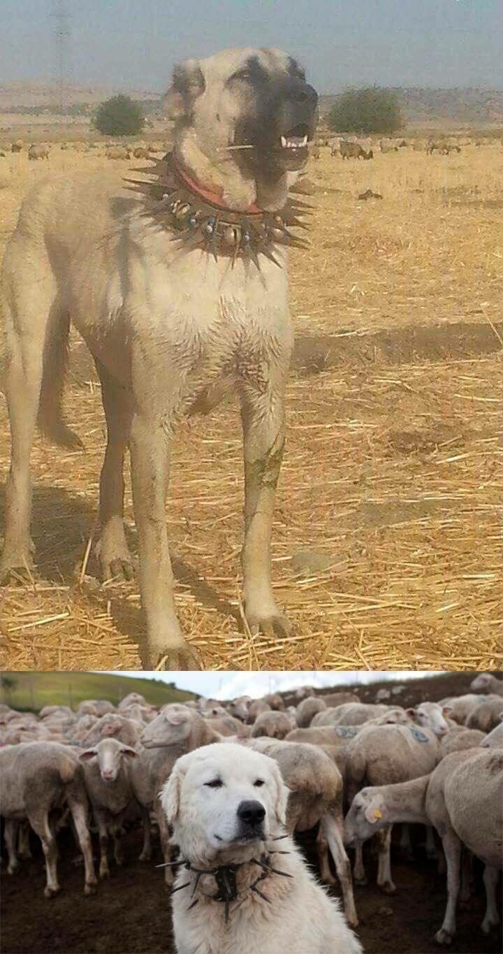 Шипастый ошейник, который надевают пастушьим собакам для защиты от волков. Ошейник не только защищает горло и сонные артерии собаки от укусов волков, но также служит для причинения вреда хищникам