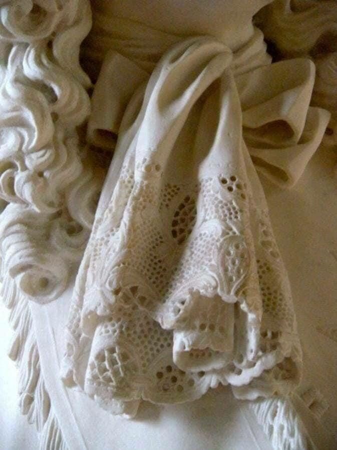 Это не кружевная ткань, а часть скульптуры, вырезанной их цельного куска мрамора