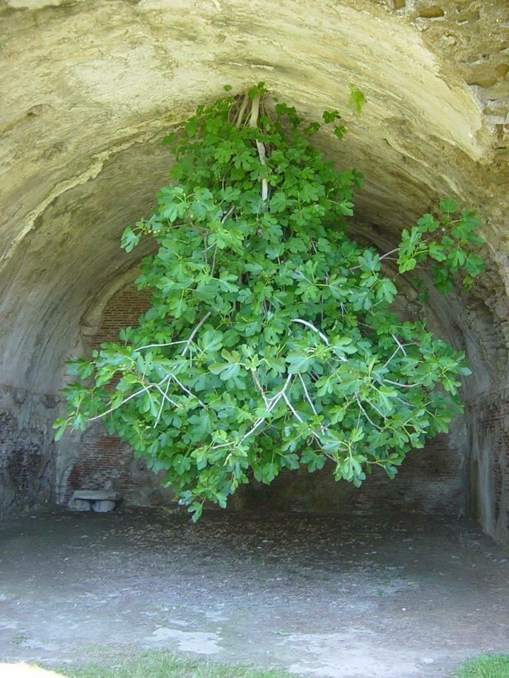 Растущий вверх ногами инжир в археологическом парке Байя, Неаполь, Италия