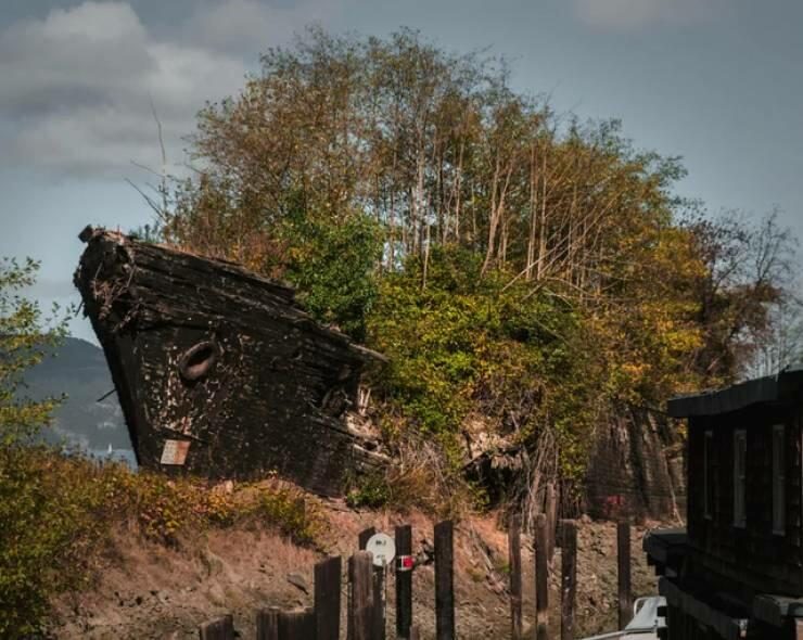 Захваченный природой старый корабль в штате Вашингтон, США
