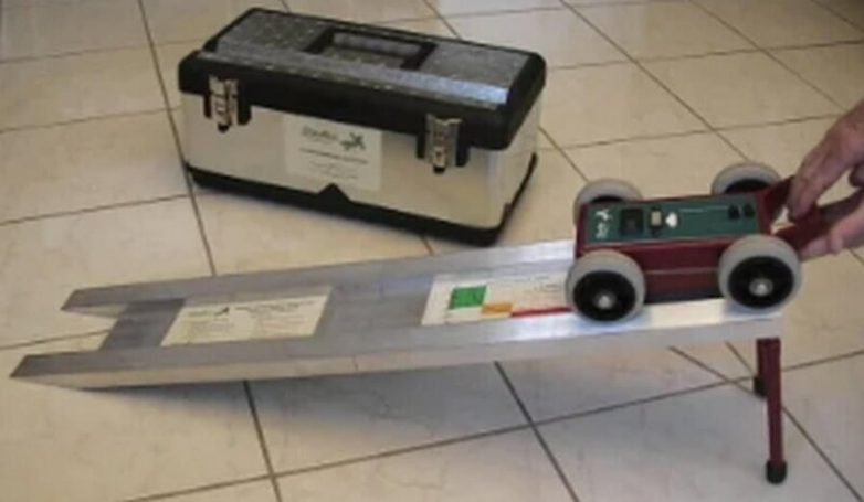 4. Рабочий запустил какую-то штуку на колесиках, внимательно посмотрел насколько далеко она откатиться, измерил расстояние и что-то записал в блокнот. Что это за прибор такой?