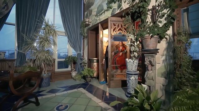 При этом, художник продолжает обставлять ее — и не современной мебелью, а старинной.