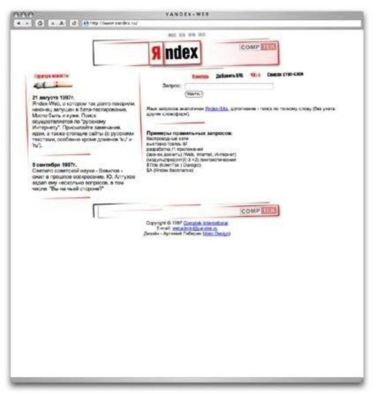 Первая версия Яндекса