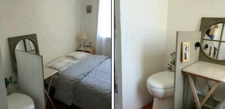 Парижская скромность, так вежливо отгородили унитазик от кроватки!