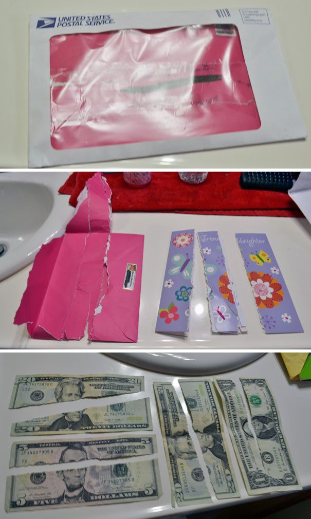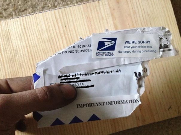 USPS сожалеет, что письмо было повреждено во время обработки почты. Чуть более чем полностью повреждено.