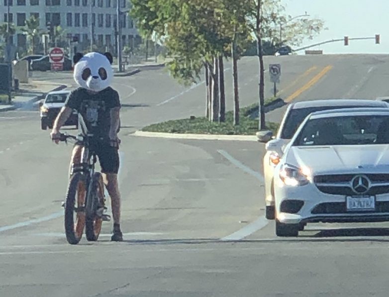 Просто шлем в форме головы панды, который вызывает улыбку у всех