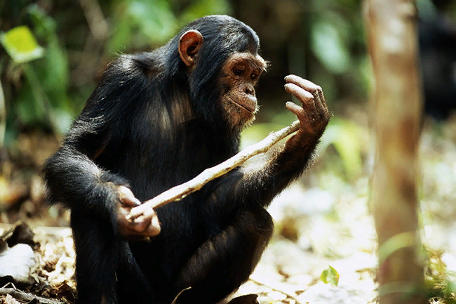 У деток шимпанзе палочки и камушки вместо кукол