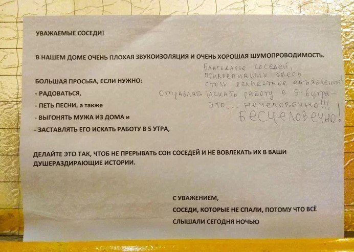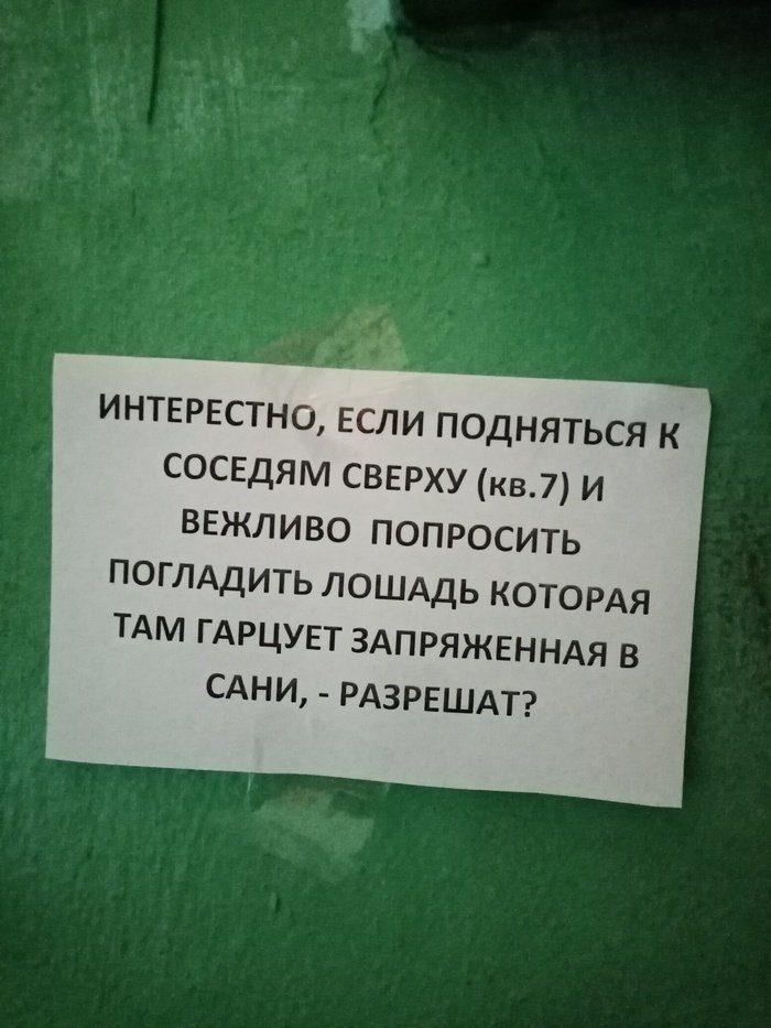 Интересно, откуда появляются такие нелепые и искрометные шедевры, которые генерируют те, кого мы емко называем «соседи»? Нет ответов, только новые перлы.