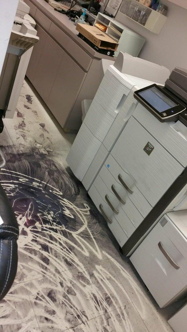 «Кто-то в моем офисе пытался заменить картридж для нашего принтера и разлил чернила по всему полу, когда вынимал старый»