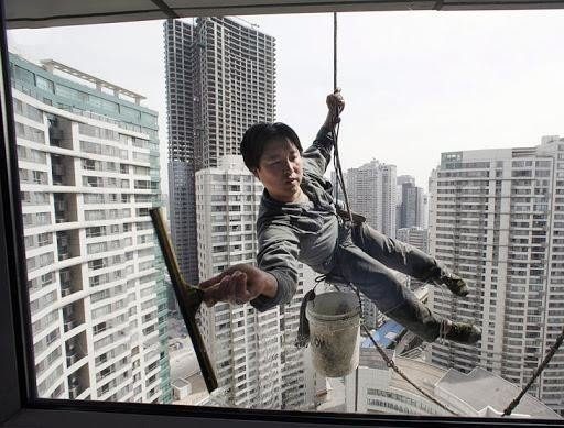 Мойщик окон в Китае