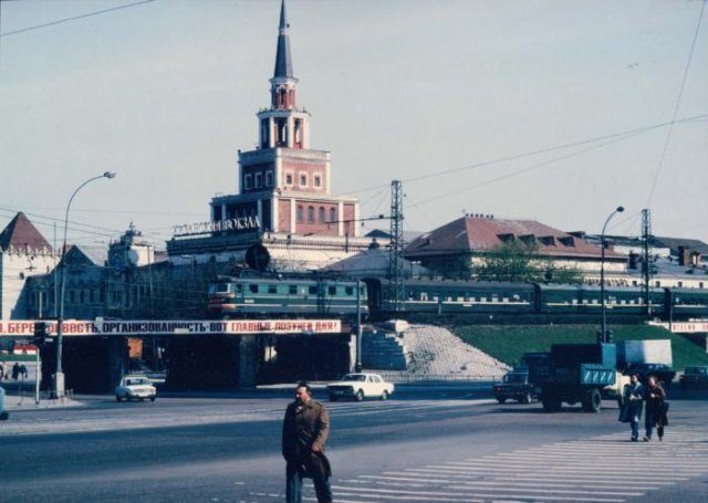 Пассажирский поезд следует по Каланчевскому путепроводу, 1986 год, Москва