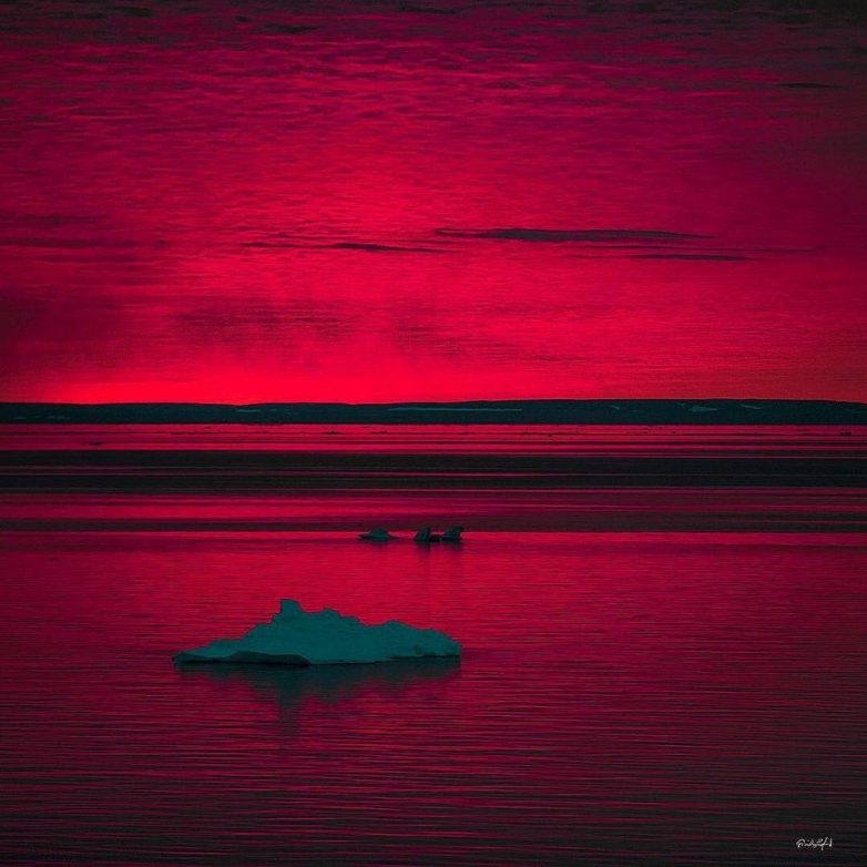 В Арктике яркие краски редкость, зато уникальные кадры попадаются чаще обычного. Арктический закат восхитителен.