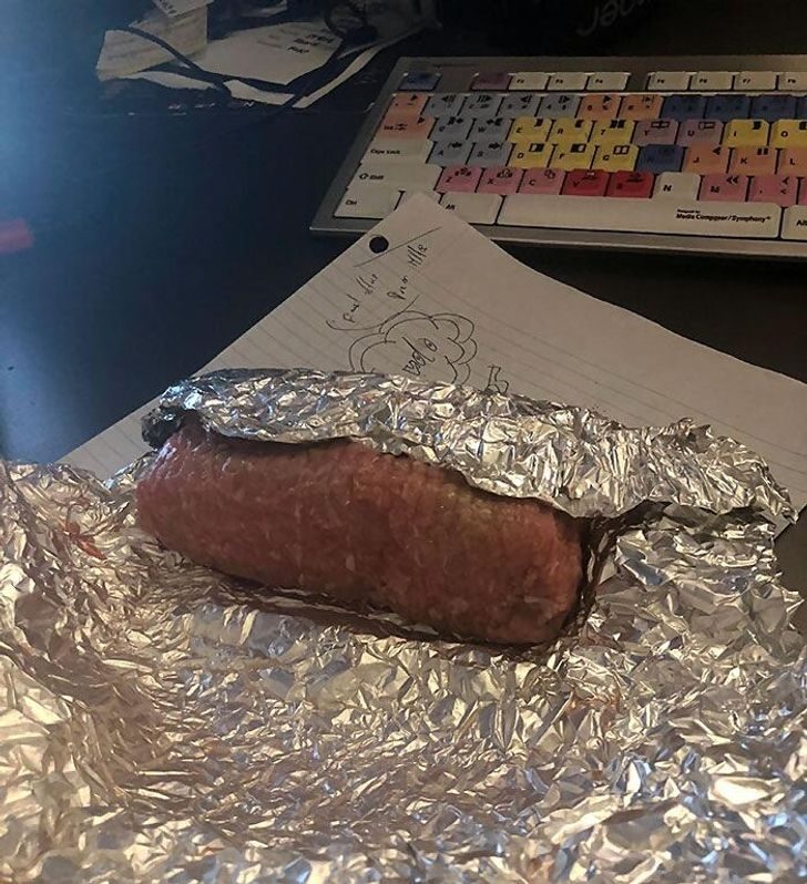 Перепутал свертки и прихватил на работу порцию сырого фарша вместо полдника, потому что жена одинаково заворачивает разные продукты для хранения в холодильнике