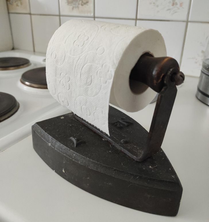 «Старый, массивный чугунный утюг стал надежным держателем для полотенец» вообще то туалетной бумаги!!!