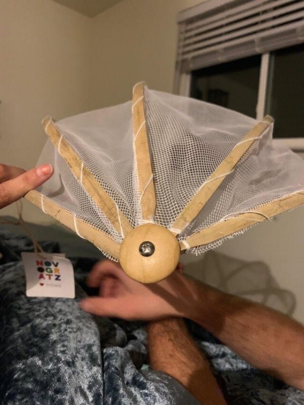 Ответ: С помощью этого веера отпугивают насекомых от еды или накрывают им тарелки и блюда.