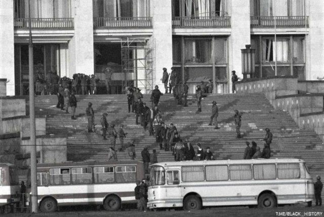 Отряд «Альфа» выводит арестованных из здания Белого дома. Политический кризис. Москва. 4 октября 1993 год.