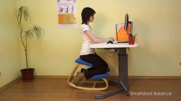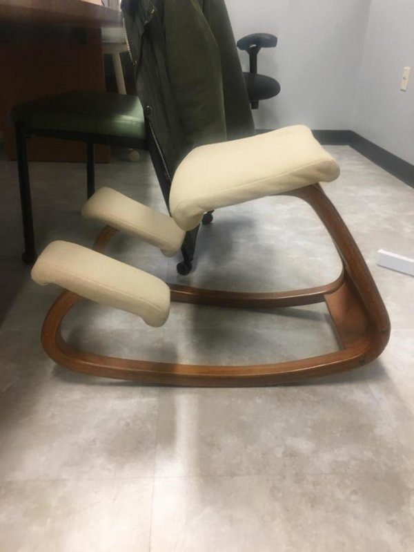 Ответ: это ортопедический коленный стул. Человек садится на сиденье, колени кладет на подставки, ноги вниз, под сиденье.