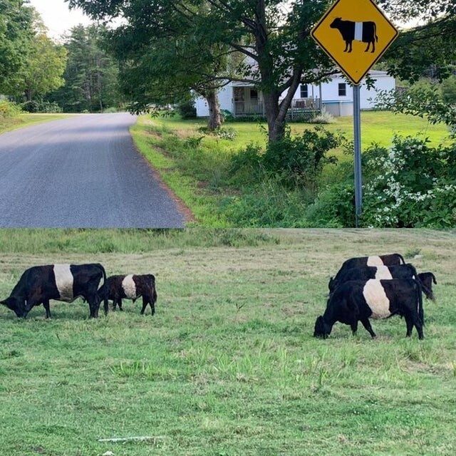 10. Сначала я подумал, что кто-то заклеил вывеску изолентой, но потом увидел коров