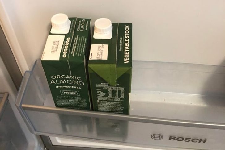 Нельзя ставить миндальное молоко и овощной бульон рядом, если они так похожи – останешься без завтрака!