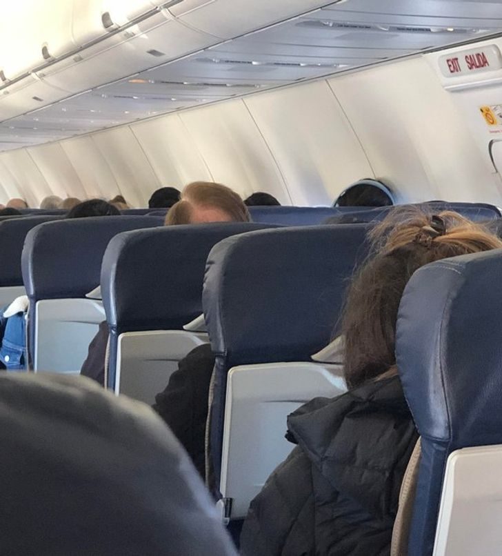 Дяденька, который с лысиной, упёрся носом в подголовник. А что не так?