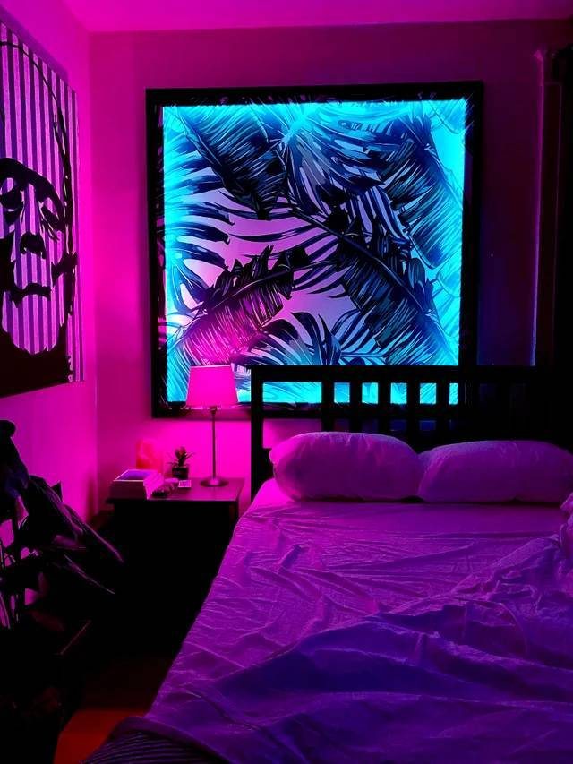 «Сделал для своей комнаты тропический принт в раме с подсветкой. Использовал для этого пиломатериалы на сумму 16 долларов + гобелен + светодиодную ленту на общую сумму 28 долларов»