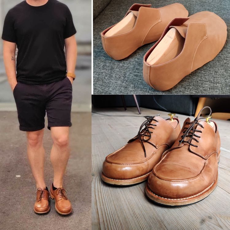 «Вот несколько кожаных туфель, которые я сшил для себя. Они полностью сделаны из кожи ручной прошивки»