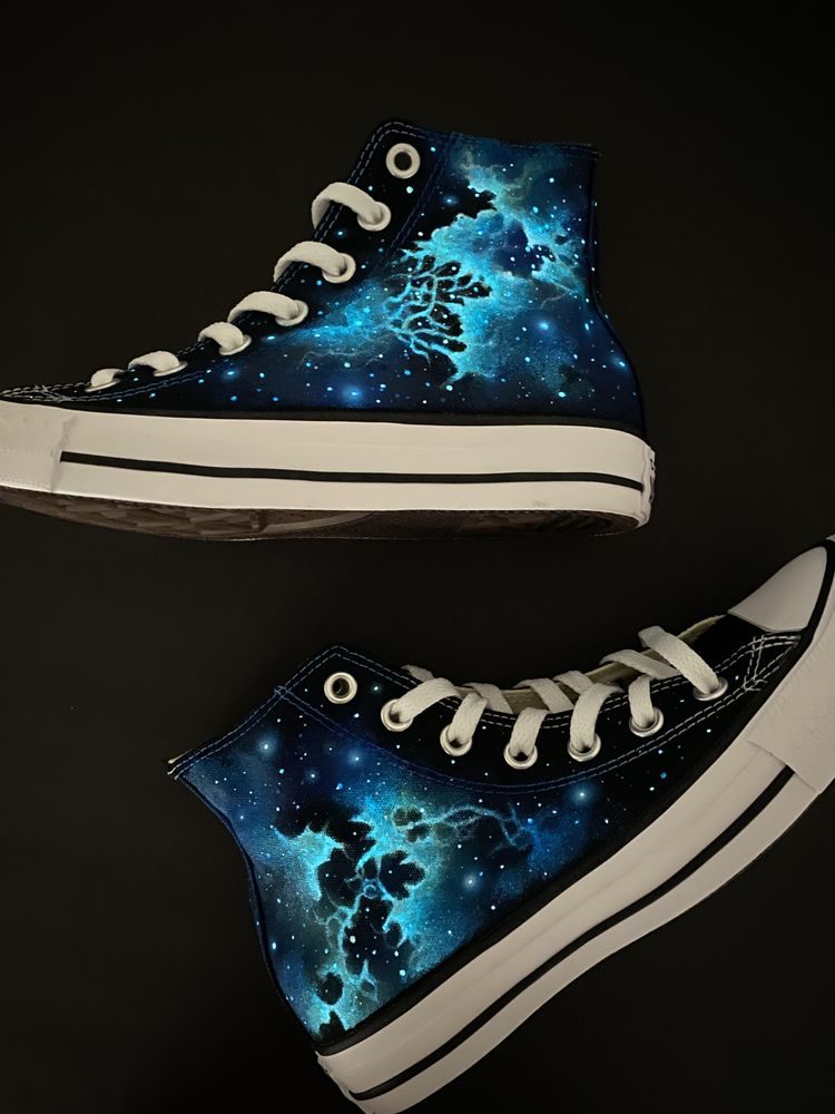 «Светящаяся в темноте туманность на кедах, нарисованная вручную»