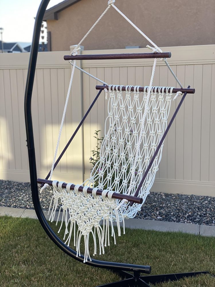 «Мы с мужем сделали это кресло вместе. Он делал всю работу по дереву, а я занималась макраме»