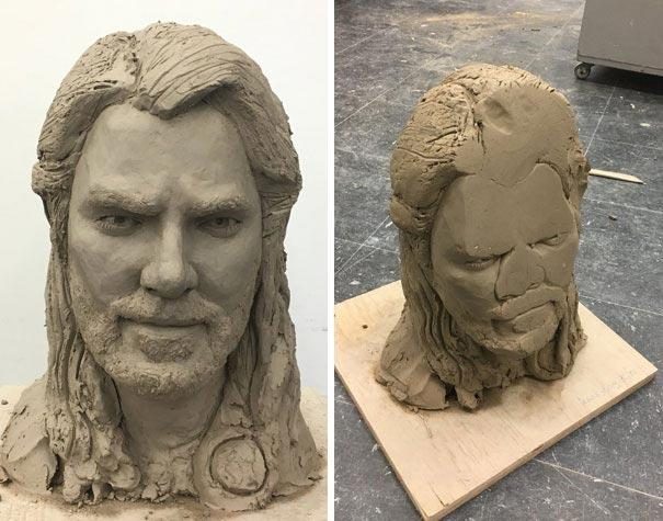Целый день занимался лепкой скульптуры, а потом она случайно упала