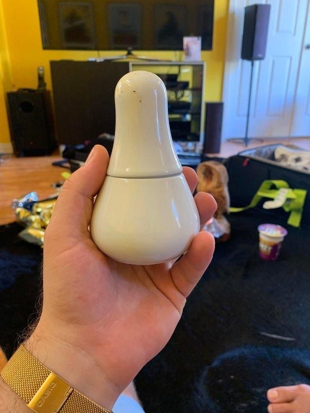 Ответ: «Выкручиватель разбитых лампочек, который обезопасит ваши руки»16. «Я нашла это среди старых инструментов деда. Что это такое?»