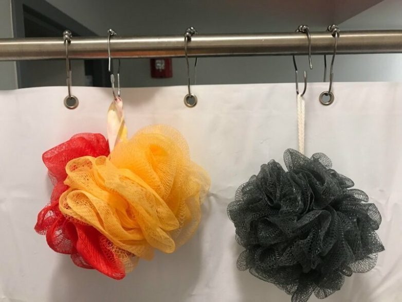 Чтобы с мочалок вода не стекала просто на пол
