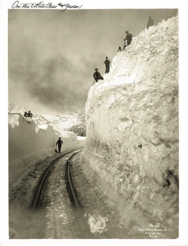 Рабочие очищают от снега железную дорогу, Аляска, 1904 год