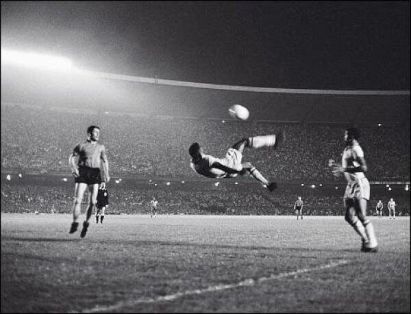 Знаменитый удар Пеле на стадионе «Маракана» в Рио-де-Жанейро, Бразилия, 1965 год
