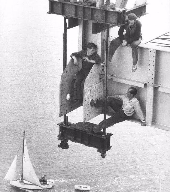 Перекур на стройке моста в новозеландском Окленде, 1950 год