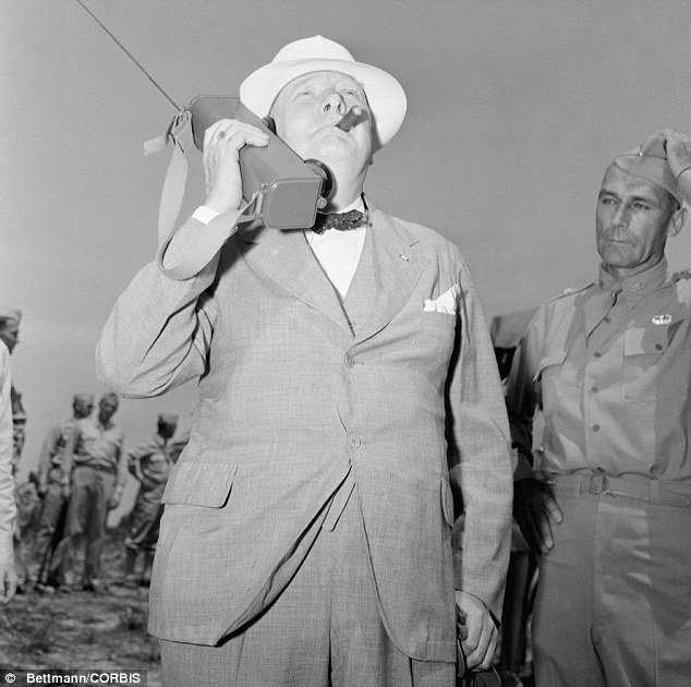 Уинстон Черчилль разговаривает по портативной рации, 1942 год, форт Джексон