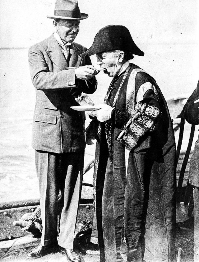 Первая женщина-мэр в Англии Екатерина Хант из Колчестера на официальном открытии сезона устриц, 1925 год.