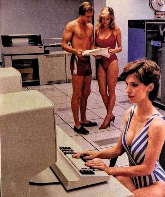 На самом деле, в то время вычислительная техника производила столько тепла, а системы теплоотведения настолько малоэффективны, что проще было раздеть персонал, чтобы не слишком потели.