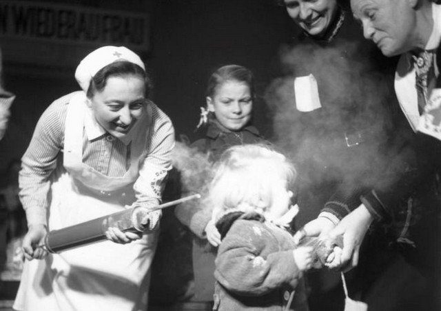 Обработка ребенка порошком ДДТ, 1945 год, США