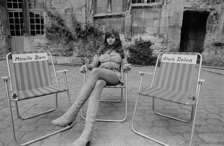 Сентябрь 1970 года. Начинающая французская актриса Мария Шнайдер на съемках фильма «Влюбленные» (Madly) с Аленом Делоном и Мирей Дарк в главных ролях. Фото Pierre Bonnotte.