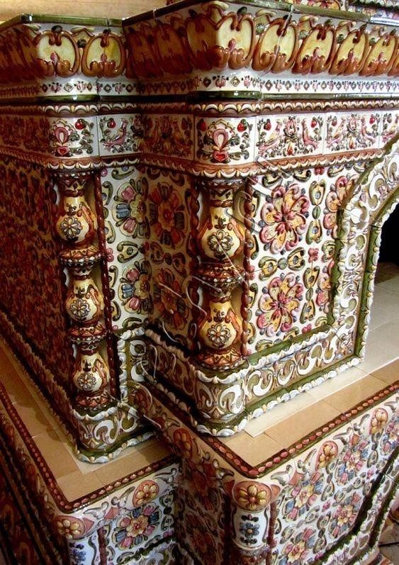 Множество разноцветных и поливных изразцов украшало русские печи.